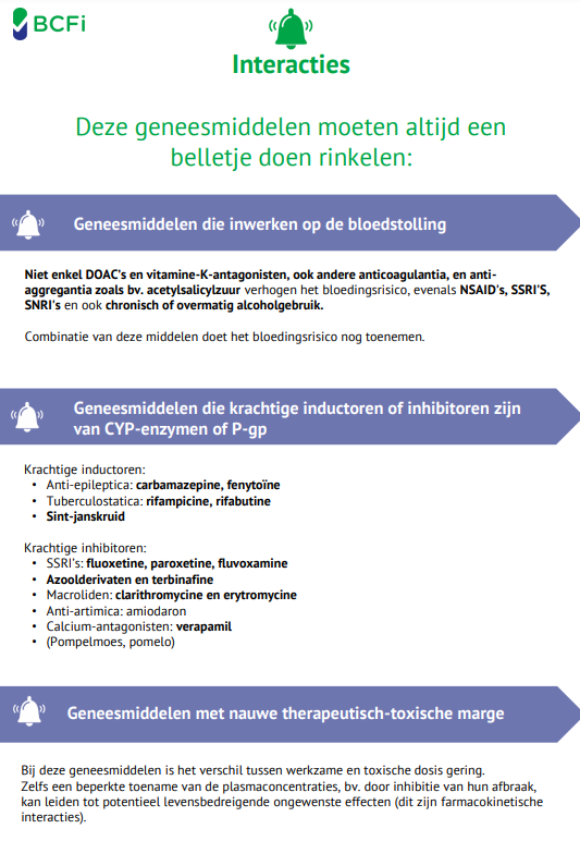 In de reeks e-learnings ‘Interacties‘ leer je om vol vertrouwen om te gaan met medicamenteuze interacties aan de hand van een handige lijst met praktische tips. We herinneren je ook aan de geneesmiddelen die bekend of berucht zijn om hun mogelijke interacties (de “usual suspects”).